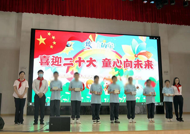 活动现场,总行第二党支部、第七党支部的党员代表为孩子们送上近百本通俗易懂、幽默风趣、色彩明亮、积极向上的绘本,希望他们自尊、自爱、自强、自立,以坚强、乐观的态度来面对生活,以努力拼搏的斗志来创造人生。孩子们用稚嫩的双手,专注、认真地为党员代表们系上红领巾并敬队礼,简简单单的动作背后是他们几十次的练习。他们虽然不能很好地用语言来表达,却用一抹艳丽的“红”诠释了自己的感恩之心。