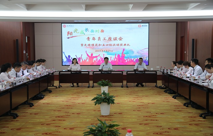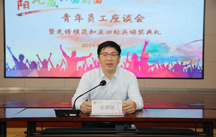 4月29日,总行团委举行“阳光成长面对面”青年员工座谈会暨先锋模范和五四标兵颁奖典礼。党委书记、董事长金建康,党委副书记朱志祥,总行团委班子成员,团支部书记,先锋模范、五四青年标兵、优秀年轻干部和青年员工代表等60余人参加,朱志祥副书记主持。