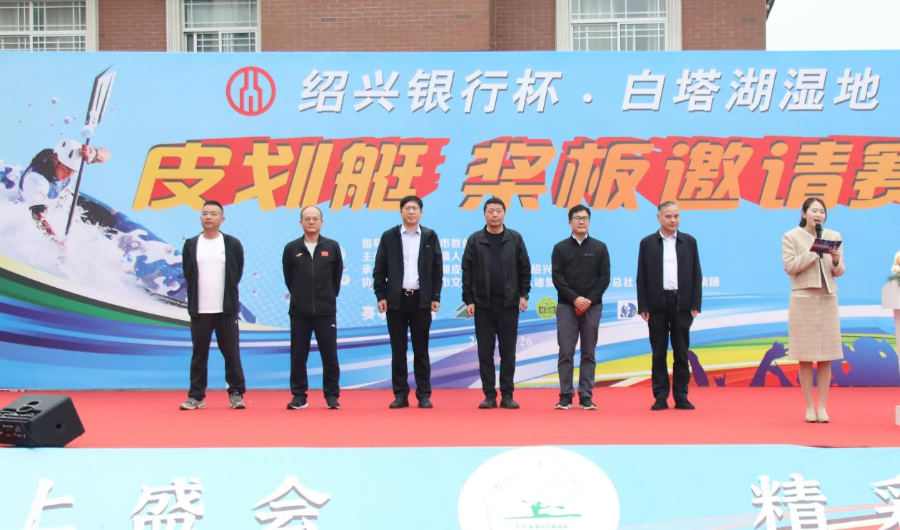 金秋十月,白塔湖国家湿地公园碧波荡漾,百艇待发。10月26日上午,2025“绍兴银行杯”皮划艇桨板邀请赛在此隆重举行,来自省内外各地250余名运动员参赛。绍兴市体育局党组成员许阿四、诸暨市人民政府副市长骆杰,我行党委书记、董事长金建康等出席开幕式。