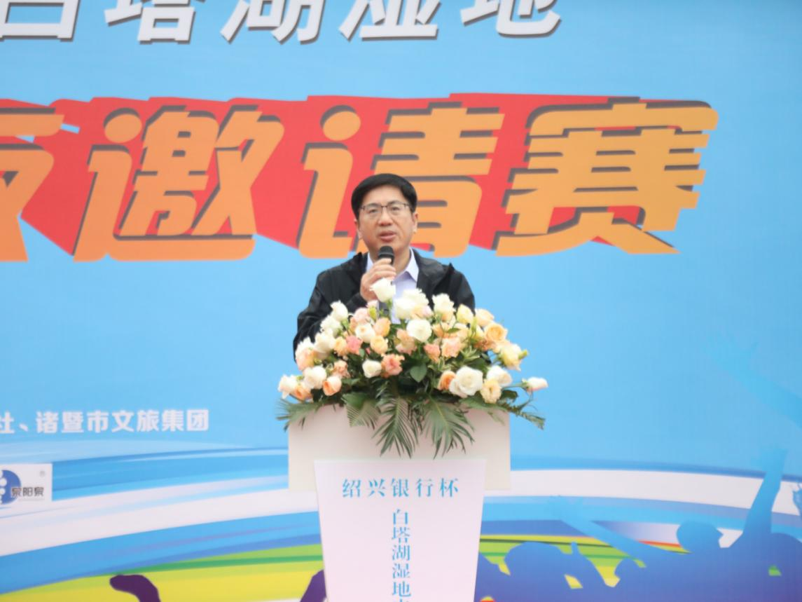 诸暨市人民政府副市长骆杰致欢迎辞。他表示,近几年来,诸暨市委市政府致力于打响运动休闲城市品牌,积极探索“体育+”融合发展模式,有力推动体育与产业、文旅、康养等多维度深度融合,先后成功举办西施马拉松、“村BA”等一系列有特色、有质量的本土赛事,体育事业呈现蓬勃发展的良好态势。本次皮划艇桨板邀请赛,不仅集娱乐性、观赏性、竞技性于一体,更是与白塔湖秀丽的自然环境完美融合。希望全体运动员,在水天一色中感受於越大地、江南水乡的独特魅力,以最佳的竞技状态,赛出风格、赛出水平、赛出友谊。