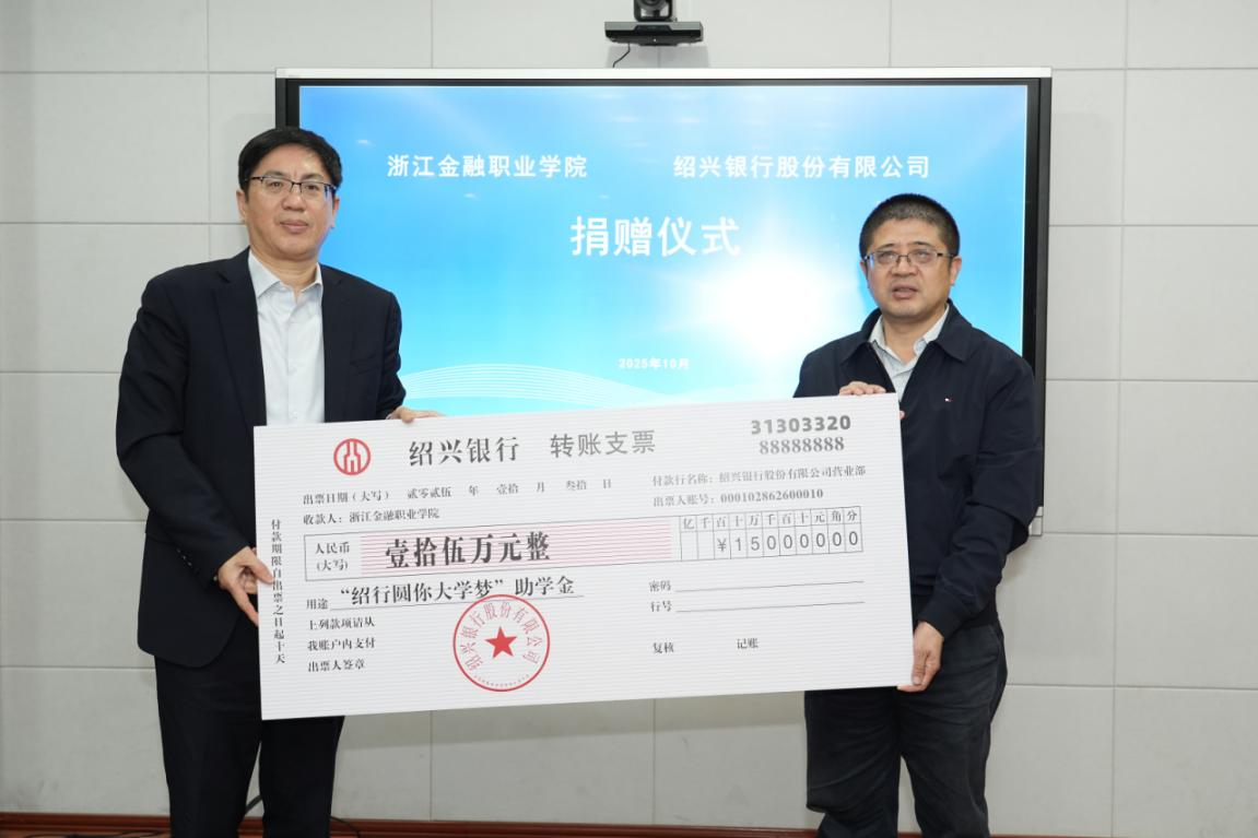 会上,双方举行了“绍行圆你大学梦”助学金捐赠仪式,我行向浙金院绍兴校区50名在册低保、低边学生提供15万元助学金,帮助品学兼优的困难学生安心求学、成长成才。