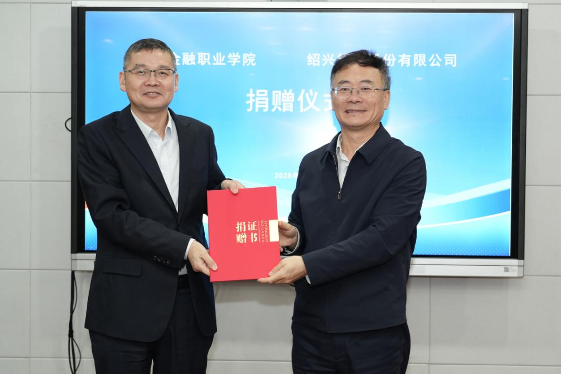 张鹏超副校长代表浙金院向我行颁发捐赠证书。